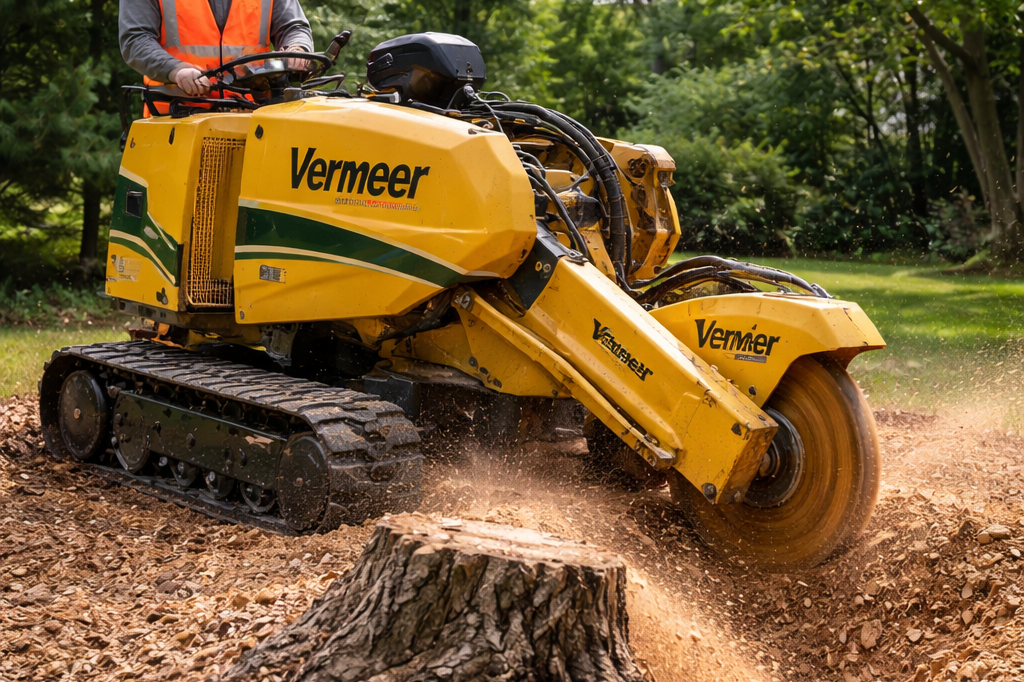Med hjälp av stubbfräs kan vi fräsa era stubbar till en jämn markyta.